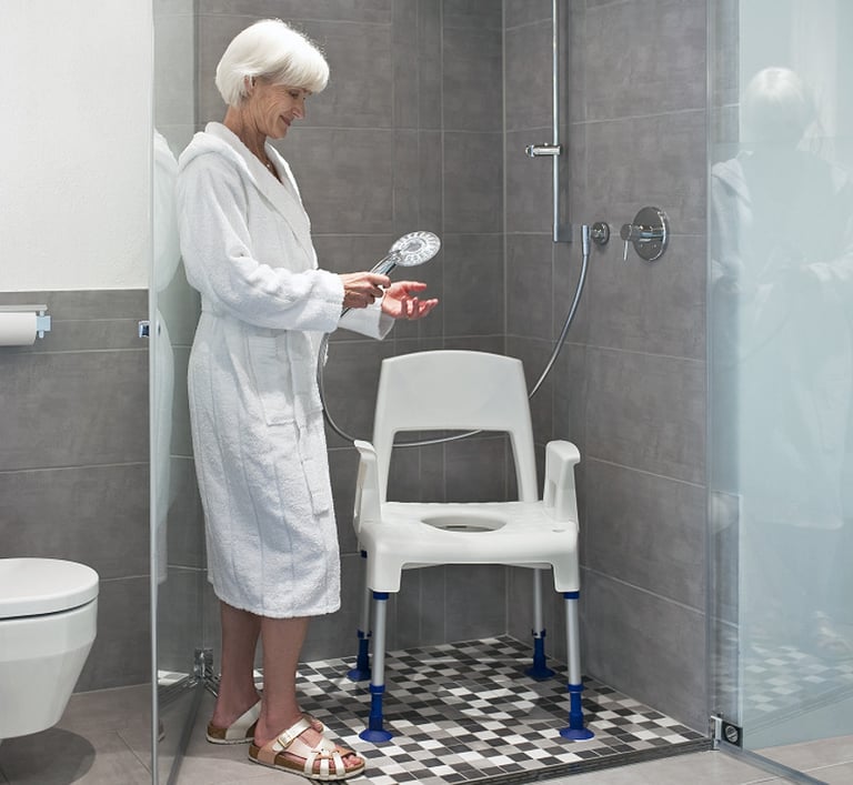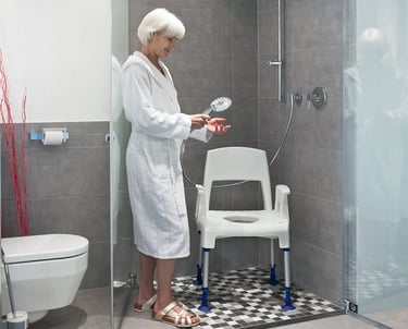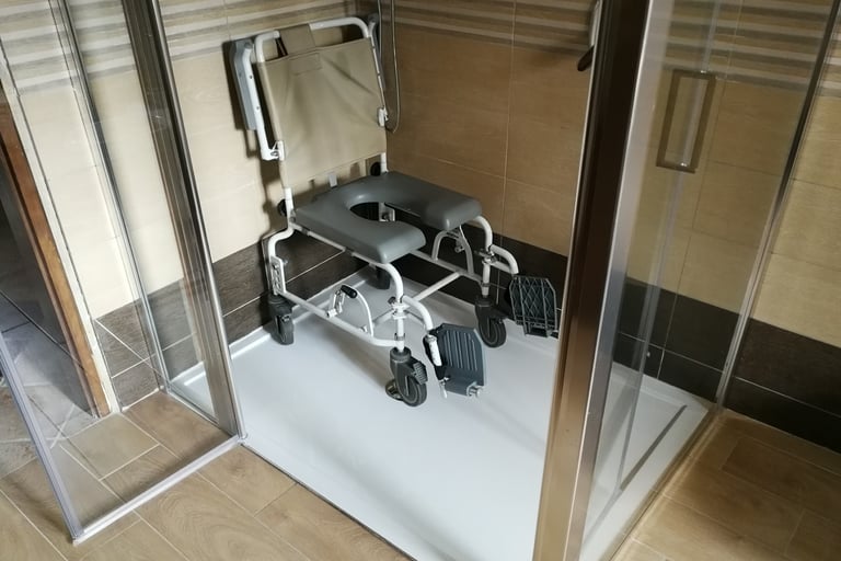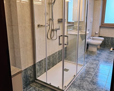 Realizziamo cabine doccia attrezzate con seduta e maniglie per persone anziane o diversamente abili.